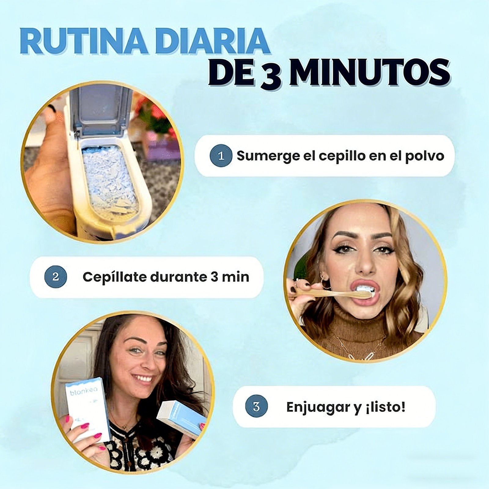 Este blanqueador es super f¨¢cil de integrar en mi rutina diaria. Solo 15 minutos y listo para el d¨ªa.
