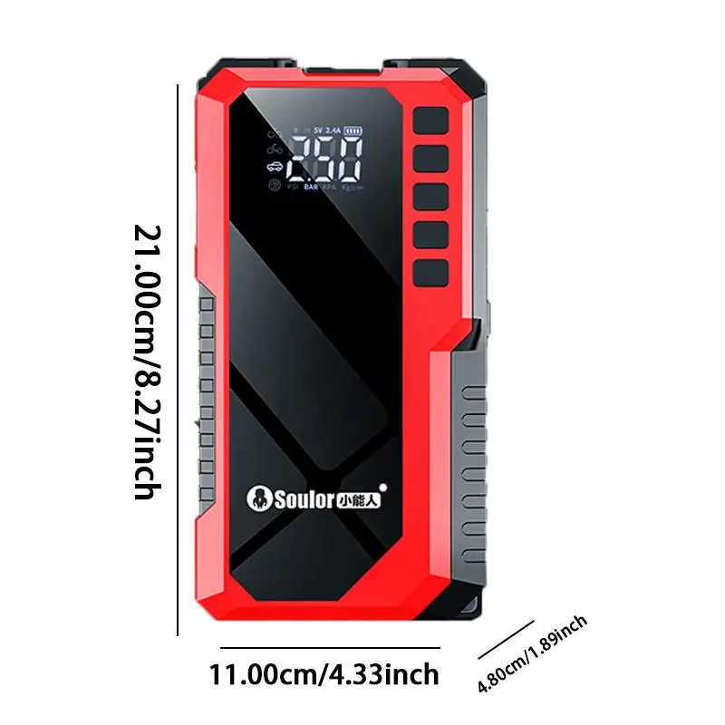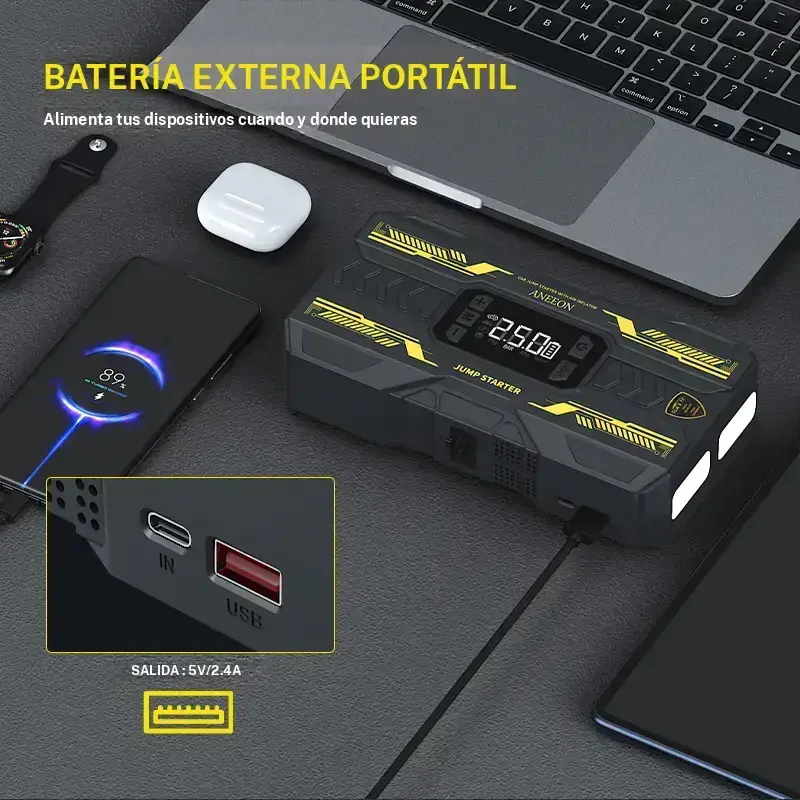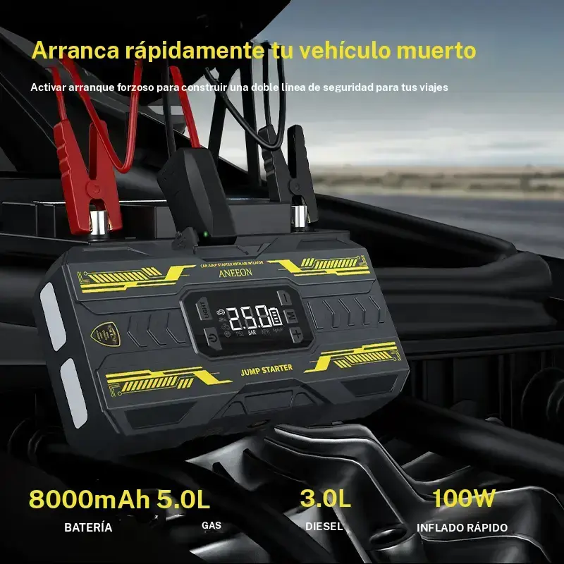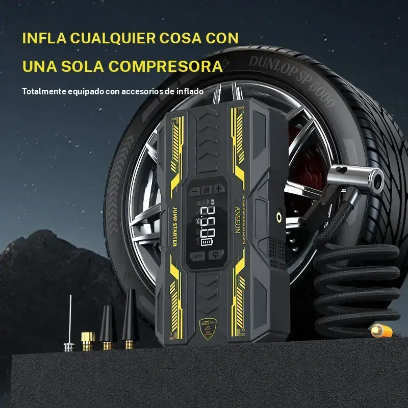 Compresor de aire integrado】:Equipado con compresor de aire,permite inflar neumaticos,ampliando su funcionalidad para emergencias en carretera.