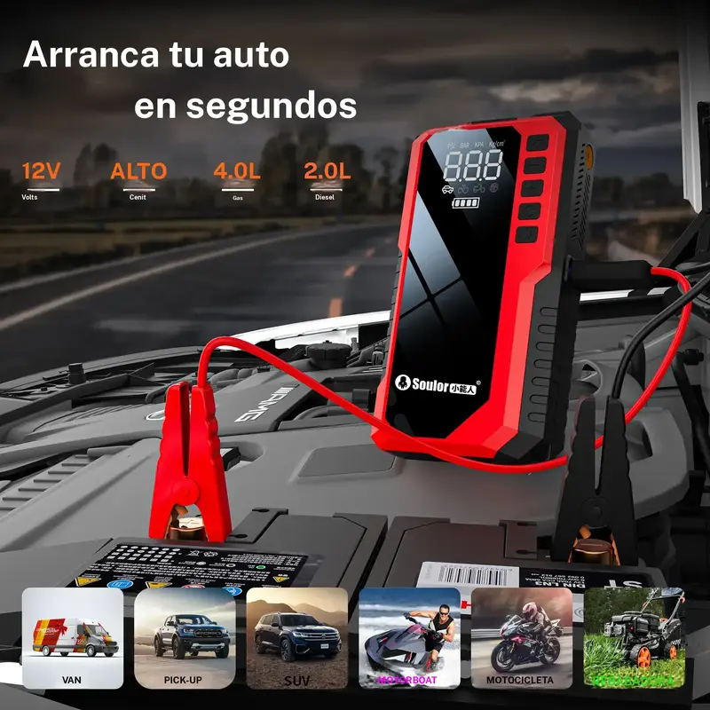 Must-have para cualquier conductor. La combinaci¨®n de arrancador y compresor es genial. Funciona con diferentes tipos de coches, y el display es claro para ver la presi¨®n de los neum¨¢ticos.
